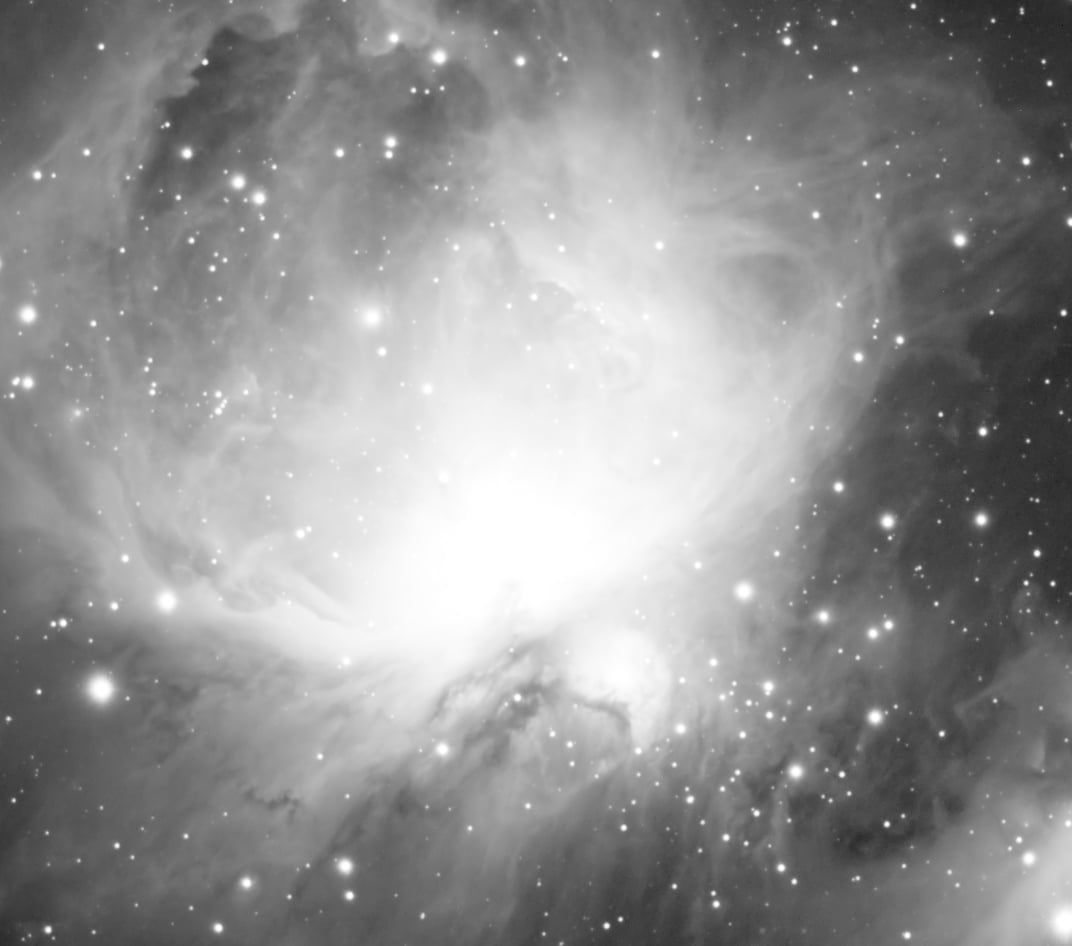 Par exemple, pour la nébuleuse d’Orion, où la zone saturée présente des détails contrastés :