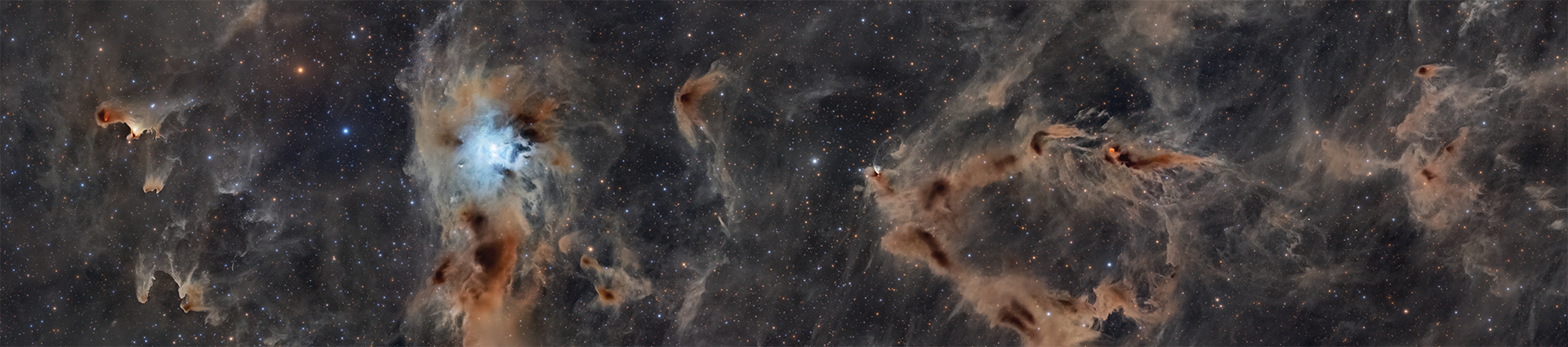 La gestion des couleurs est d’une justesse exemplaire. Le bleu électrique de l’Iris ne « bave » pas sur les zones environnantes, et le rouge des objets de Herbig-Haro reste saturé et distinct. La transition entre les zones de réflexion (VdB 141, NGC 7023) et les zones d’absorption (LBN 468) crée une sensation de relief et de profondeur tridimensionnelle absolument saisissante.