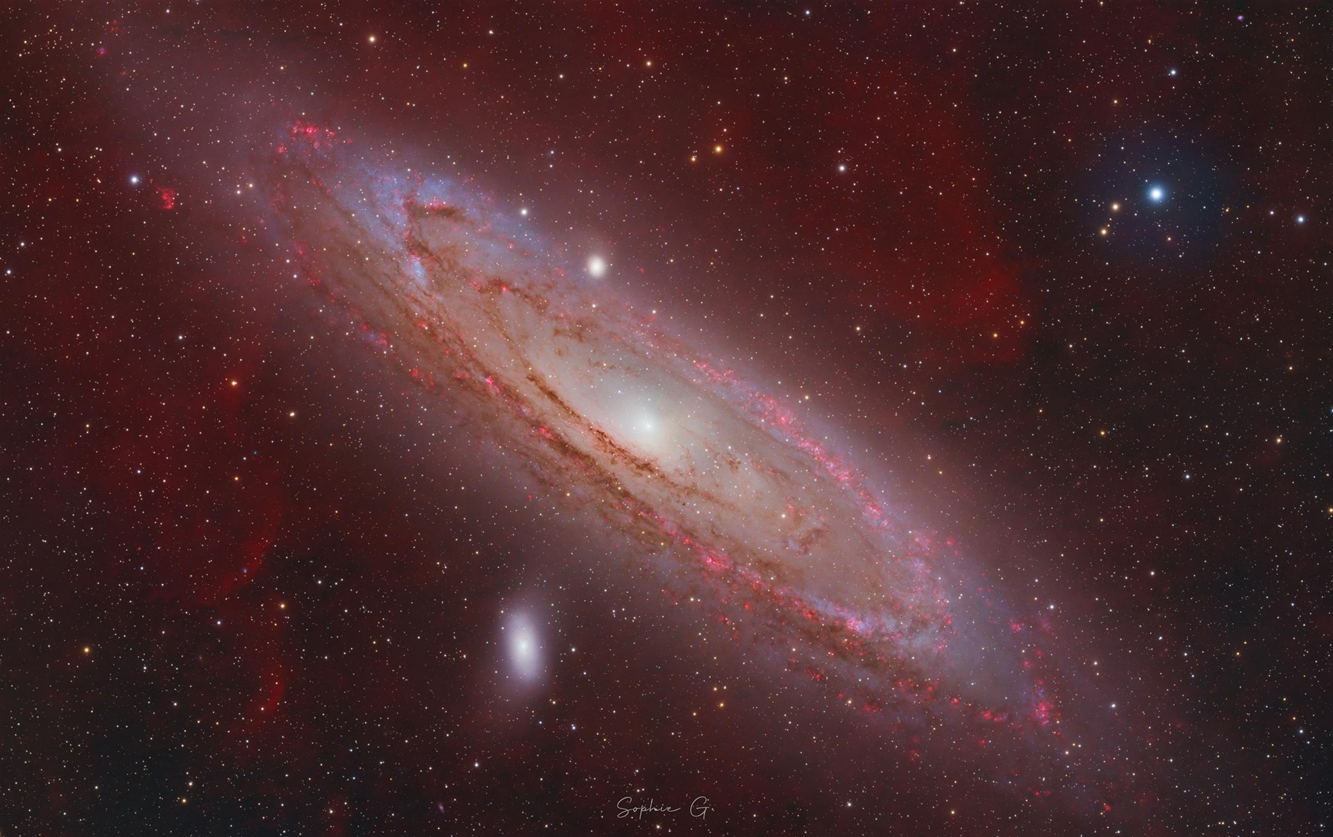L’image mise à l’honneur ce mois-ci illustre magistralement cette approche « moderne » de la photographie de M31. C’est une grande fierté de pouvoir primer une image qui non seulement relève plusieurs défis techniques ardus, mais qui est aussi l’œuvre d’une astrophotographe, Sophie Gayrard, dont la progression ces deux dernières années témoigne d’une grande passion.