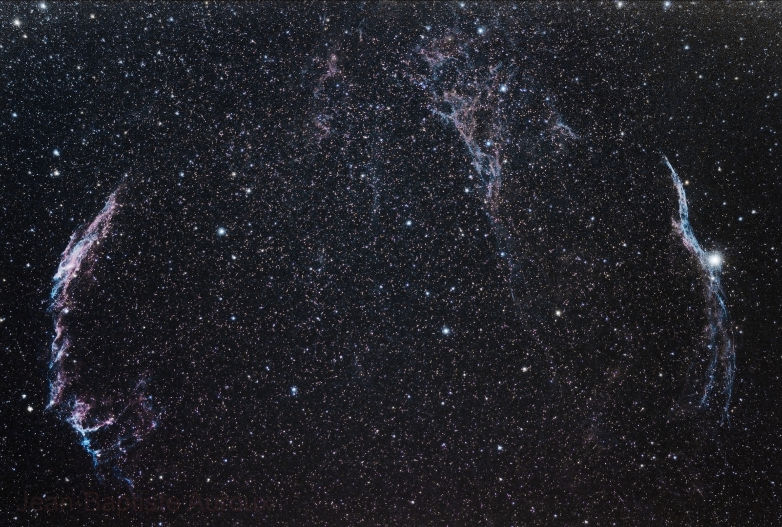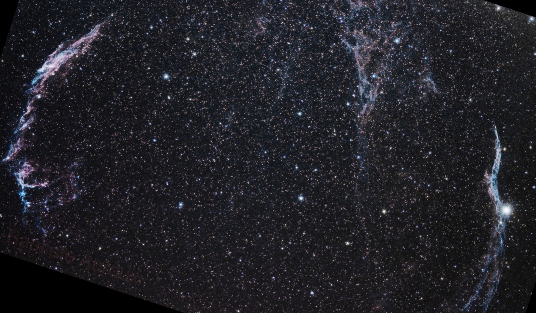 Les « Dentelles du Cygne » sont quant à elles les résidus d’une supernova beaucoup plus ancienne, ayant explosé il y a environ 10 000 ans, mais bien plus près de la Terre, à environ 1400/1800 années-lumière ! La distance exacte de la nébuleuse est encore mal connue et difficile à estimer…