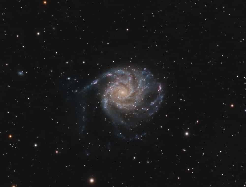 M101 est une galaxie assez étendue, et il est de ce fait assez simple de la photographier même avec un instrument de petite focale (à partir de 400mm pour obtenir quelques détails intéressants). Le grand champ en résultant permet une « mise en abîme » qui peut être très esthétique de cette galaxie, à condition toutefois d’y consacrer un temps de pose suffisant.