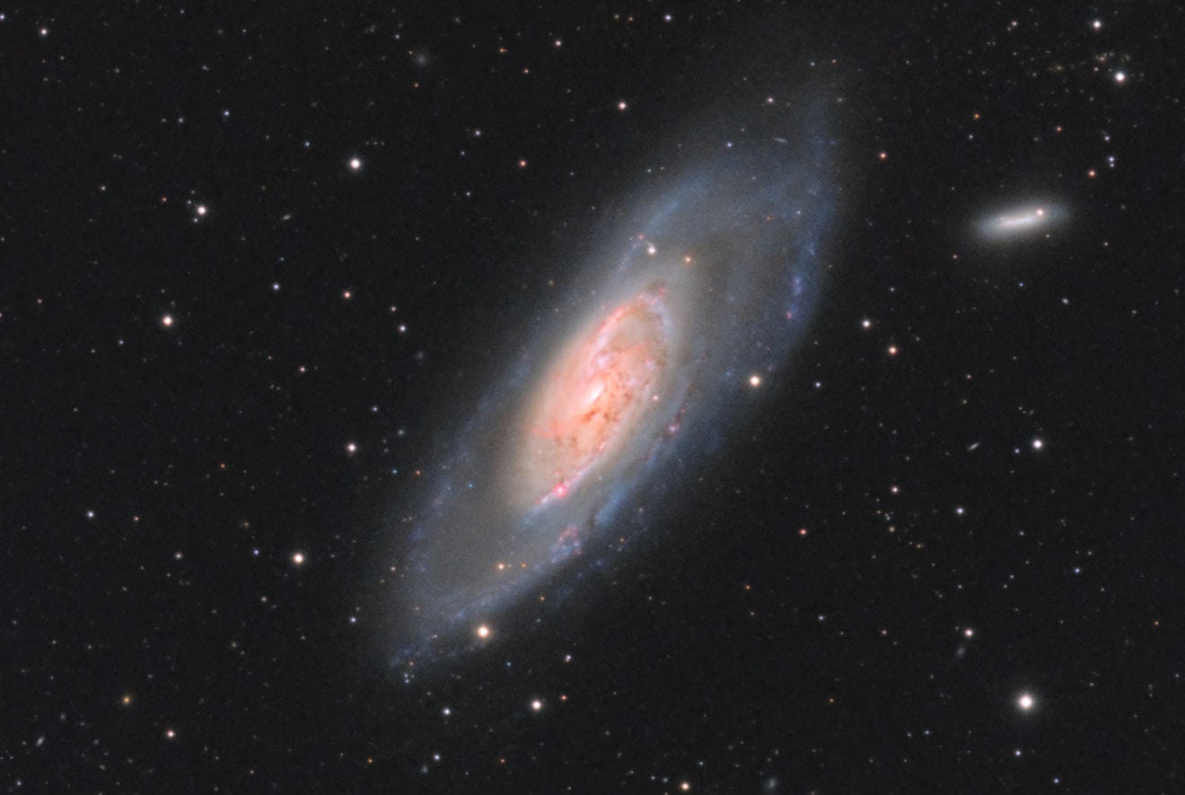 Avec une focale plus importante et s’il n’est possible de conserver que 2 de ces petites galaxies, je vous recommande de privilégier NGC 4217 et NGC 4220, qui sont les plus proches de M106 et qui permettent également d’inclure sur l’image plusieurs petites galaxies plus lointaines. Si vous ne pouvez inclure qu’une seule de ces petites galaxies, faites en fonction de vos préférences personnelles ! 🙂