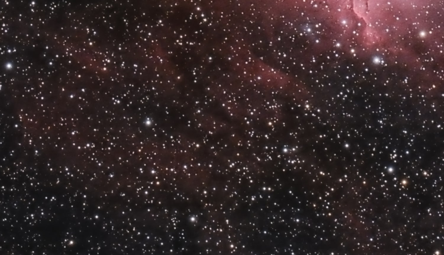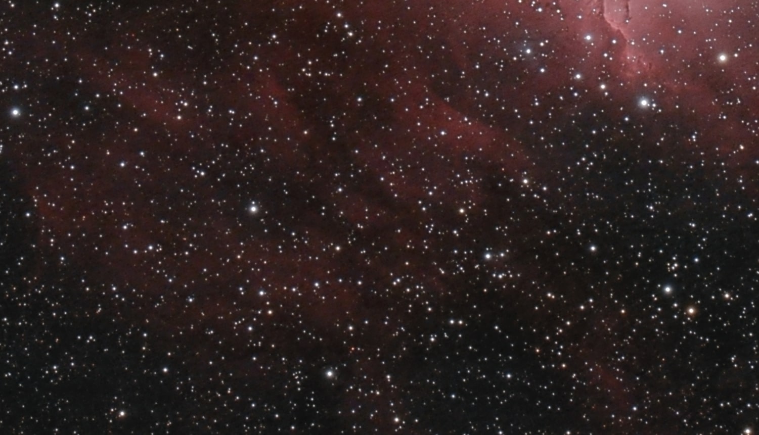 Dans ce cas précis, ce souci est accentué par un autre paramètre : la zone du ciel autour de M16 regorge de nébulosités très faibles. Avec un temps d’intégration global trop limité, il devient compliqué de distinguer, dans le fond de ciel, ces nébulosités du bruit. Le risque est dès lors d’essayer de mettre en valeur et de faire ressortir sur l’image ce qui n’est en réalité que du bruit…