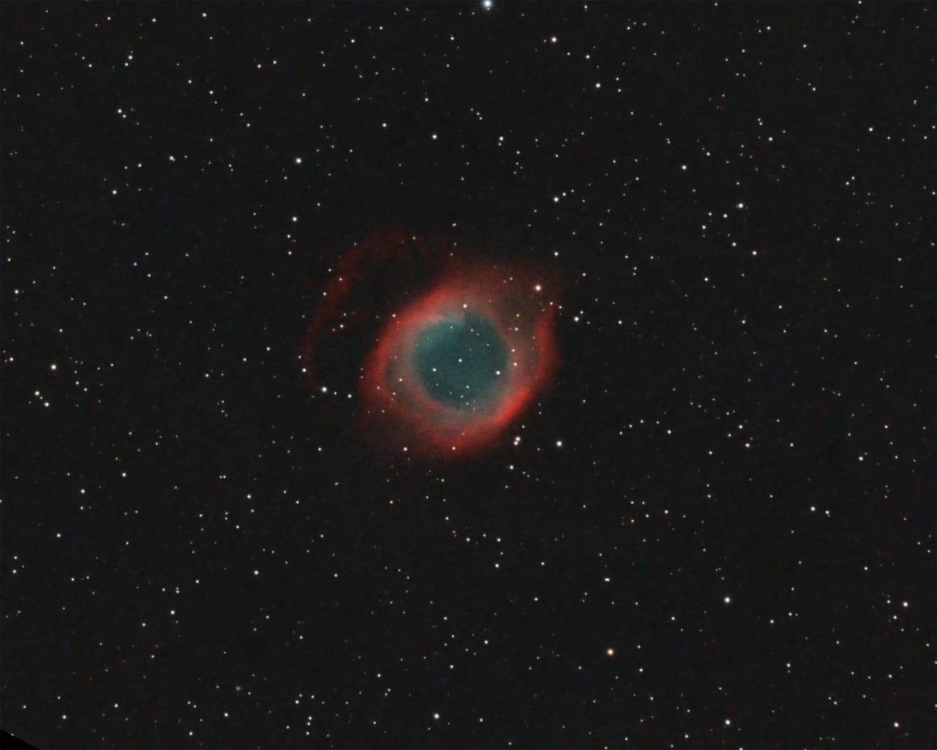 Cette image de la nébuleuse Helix a été réalisée avec une TSA102 et un APN défiltré, depuis la Corse, en seulement 1h de pose.