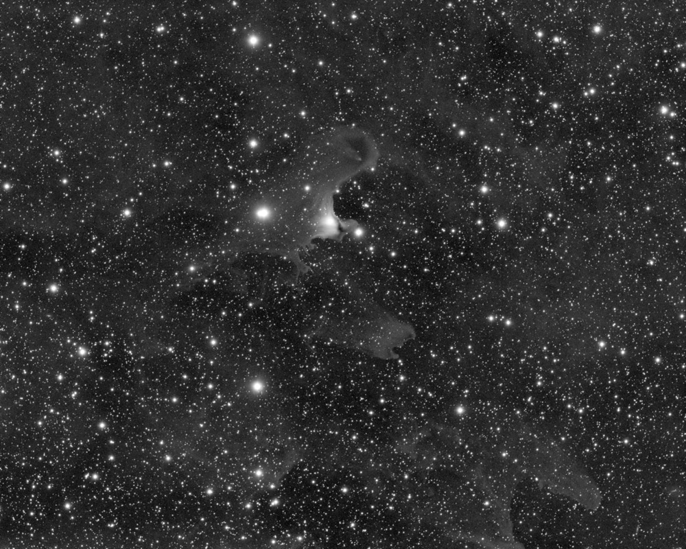 Une brute Luminance de 900s (bin1) : seule la partie la plus brillante de la nébuleuse par réflexion est (à peine) visible…